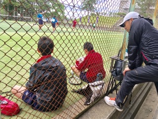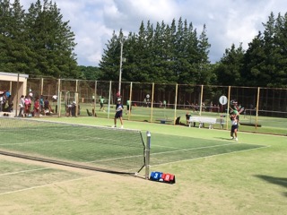 写真は、コートで待機している石井(拓)、菊地ペアです。