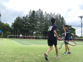 初戦の相手は三春中学校の松崎・武田ペアでした。結果は0-4でストレート負けでしたが、最後まで諦めずにボールを追いかけていました。