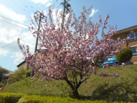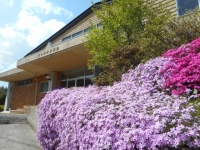 体育館前の芝桜や校舎前の八重桜が見頃です。