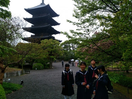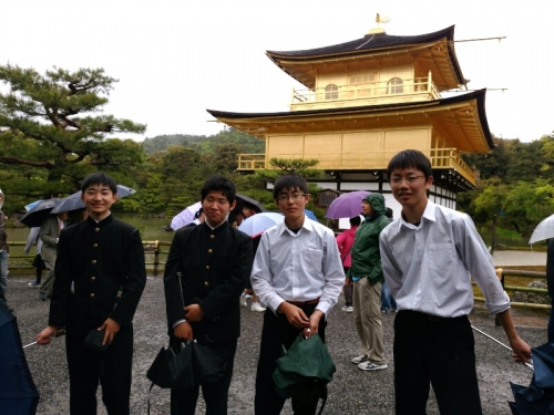 あいにくの雨でしたが、金閣寺の写真を撮ったり、金閣寺をバックにして友達と写真を撮ったりしていました。
