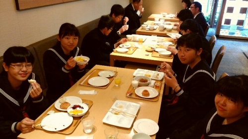 今日は1日かけての班別自主研修です。その体力をつけるために、今日も朝からたくさん食べていました。