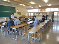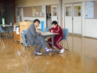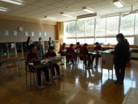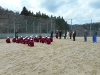 「震度6の地震発生による理科室からの出火」という設定で、全校生・職員が校庭に避難しました。避難開始の放送から人員確認終了まで、2分50秒でした。子ども達はおしゃべり等もなく、速やかに避難ができました。