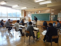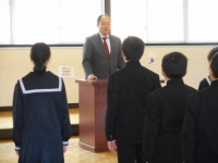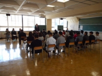 急な出動により、田村市消防署員の方はお越しいただけませんでしたが、校長先生、教頭先生から避難の原則についてお話しがありました。