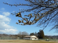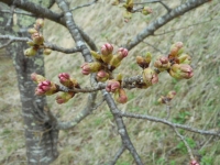 校地内の桜はつぼみがおおきく膨らみ、先端がピンク色に染まってきています。