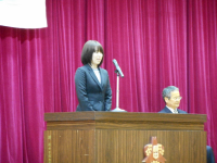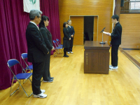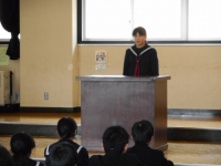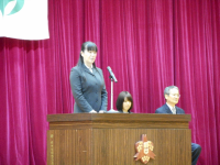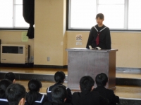 今年度の学習や部活動、委員会活動についての反省と、進級へ向けての抱負を発表しました。二人ともほぼ原稿を見ずに、顔を上げて発表することができました。