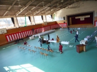 4~6校時に、1・2年生で卒業式の式場作成を行いました。