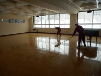 今日は2階スペース、多目的室、西階段のワックスがけを行いました。