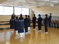 3年生が卒業し、1・2年生だけの朝会となりました。