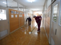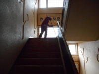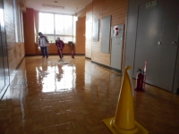 今日は3階廊下と1階スペース、東階段をワックスがけしました。