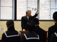 「牛歩」という言葉には「牛が歩くようにゆっくりと」という意味があります。冬休みは18日間あります。それぞれの学年で、目標を持って学習や部活動にコツコツ計画的に取り組んでください。また、休みだからといって生活リズムが乱れることがないよう、普段どおりの生活を心がけましょう。