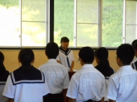 朝会で、生徒会長より今年の紅葉祭のテーマが発表されました。