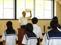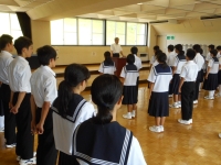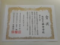 昨年4月の歯科検診の結果、歯科治療率の高さが認められ「学校歯科保健優良校」として努力賞をいただきました。朝会では生徒代表として保健委員会委員長が表彰を受けました。