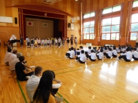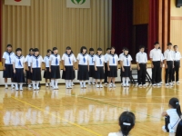 選手紹介の後、校長先生から「これまでの毎日の練習を思い出し、全力を尽くしてきてください」という激励の言葉をいただき、臨時応援団より応援歌が贈られました。
