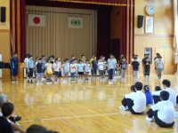午前中の授業参観終了後、緑小学校へ移動し、体育館で合唱披露を行いました。