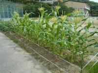 太陽の光を浴び、枝豆とトウモロコシはぐんぐん生長しています。