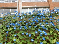 今朝は涼しい天候でしたが、昇降口前のアサガオが開花していました。