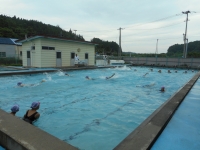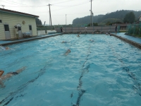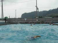 小雨の降る中、少し肌寒い気候でしたが、子ども達はクロールや平泳ぎ、背泳ぎなどに取り組んでいました。