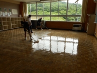 今日の清掃の時間に、2階スペースのワックスがけを行いました。