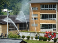 〈ポンプ車による放水訓練見学〉