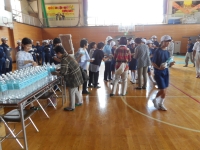 放水・救助訓練見学後、体育館へ移動し避難所設置訓練に参加しました。