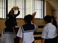 朝会では、校長先生から先週の宿題についてのお話しがありました。