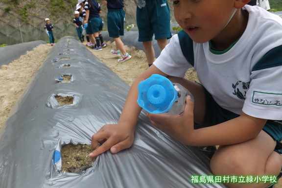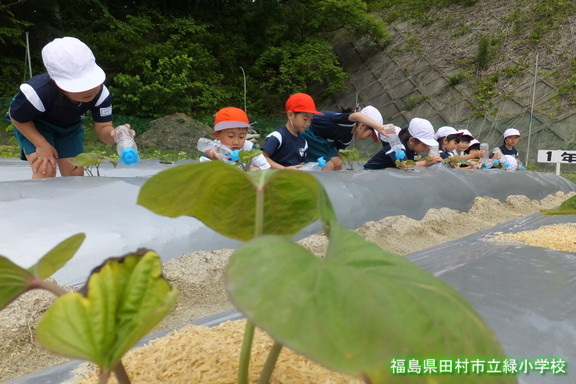 朝、1年生が畑に水やりに行くところに、ついて行ってみました。