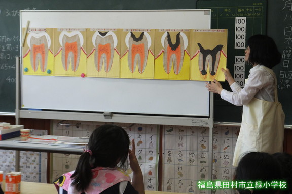 むし歯のでき方について、写真などたくさんの資料を出しながらお話をいただき、