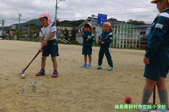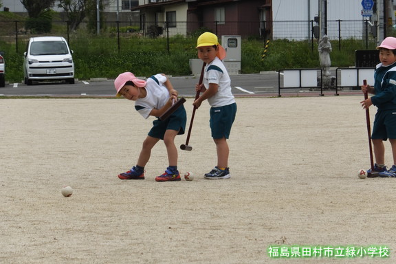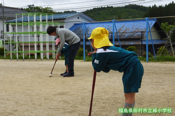 「グランドゴルフ」といって、木のスティックでボールを打ち、