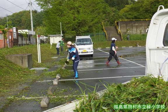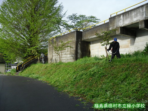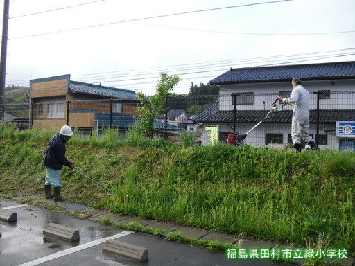 広い校地内の草刈りが進み、学校周りがみちがえてきれいになりました。
