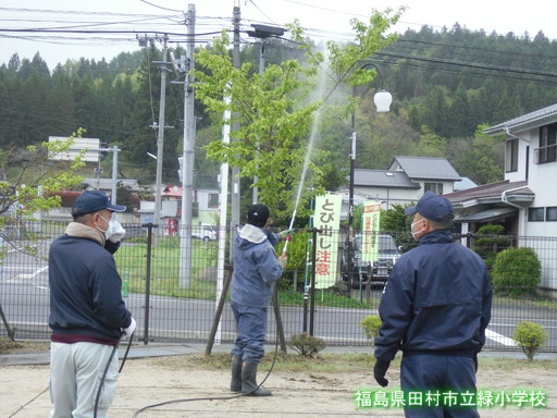 また、草刈り後に、「みどりの指導員」の皆さんが、桜の木の消毒をしてくださいました。