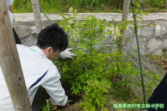 「絆の桜」で人と地域をつなぐ ~緑小学校には「絆の桜」と名付けられた桜の木が学校の周りにたくさん植えられています。子どもたちは、自分が受け継いだ桜の木を6年間かけて世話し、観察していきます。6年生が卒業すると、その桜は新1年生が受け継ぎます。6年生から1年生へ、人と人をつなぎ、人と地域もつなぐ「絆の桜」を子どもたちは今日も大事に育てています。~