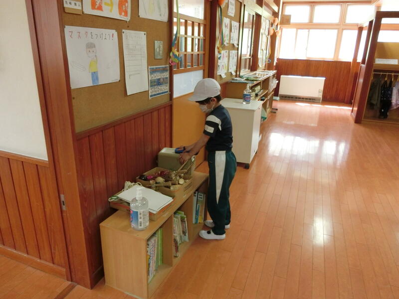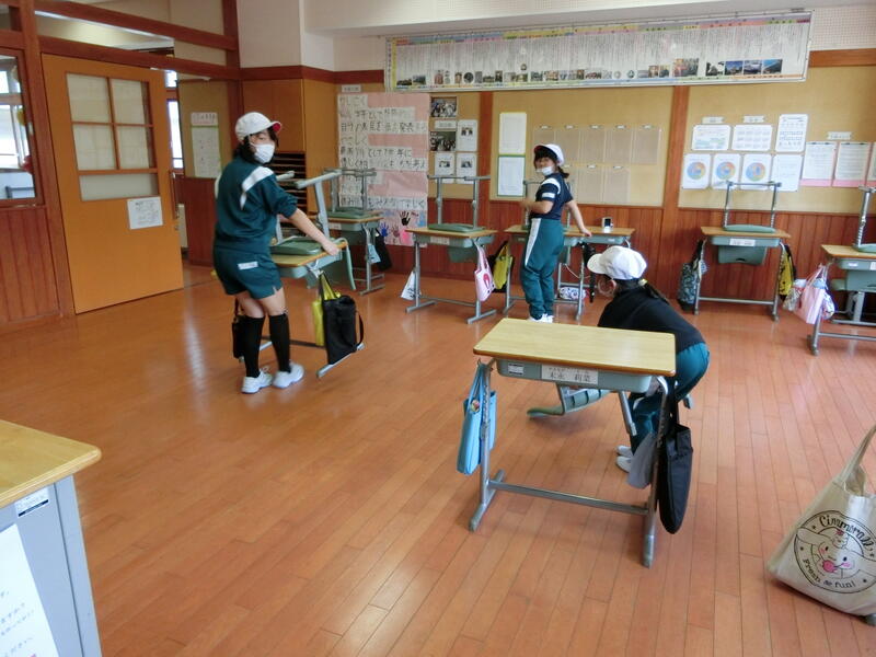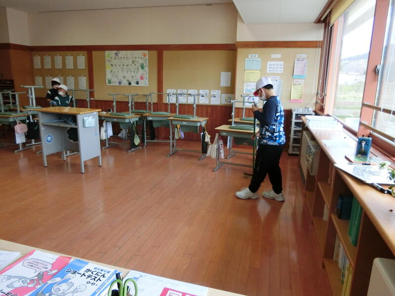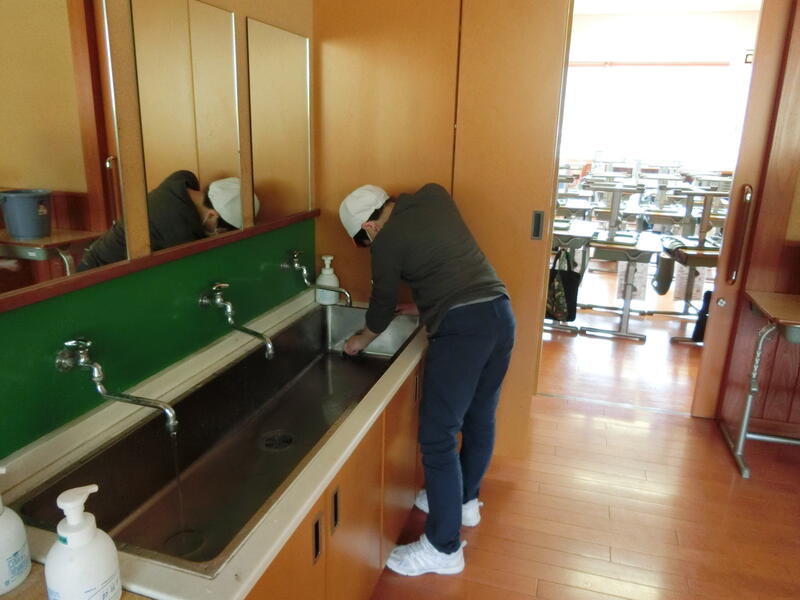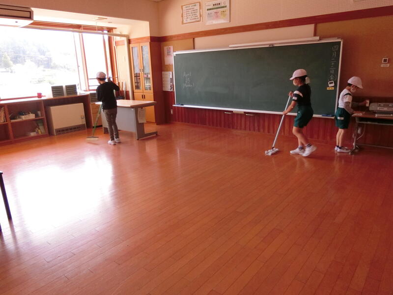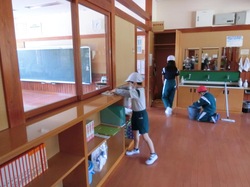今日の清掃の様子です。縦割り班ごとに分担、協力して清掃をしています。下級生も一生懸命清掃に取り組んでいます。清掃を通して、自分たちの学校を大切に思う気持ちも育っています。