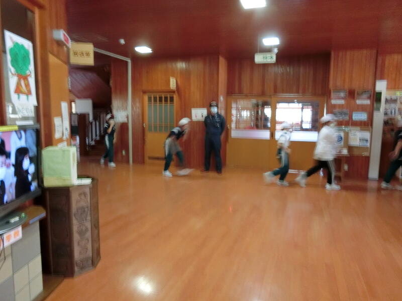 避難訓練を実施しました。近隣の火災を想定し、校庭に安全に避難する練習です。