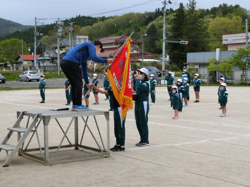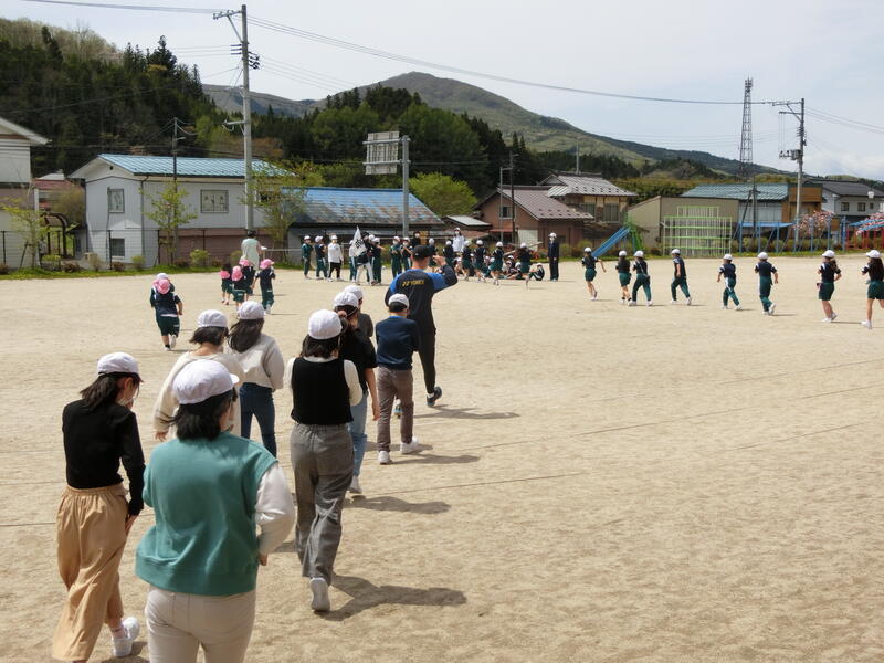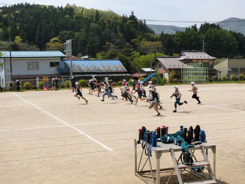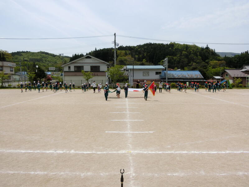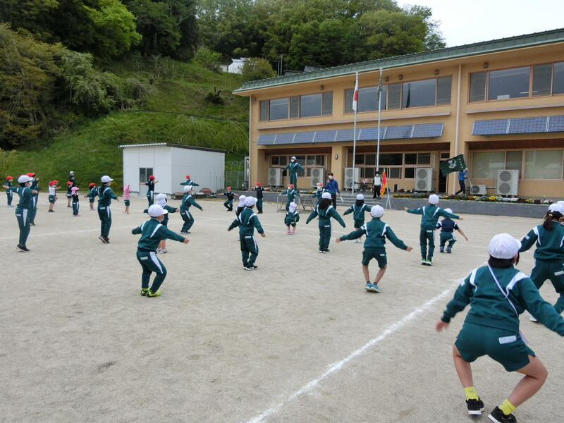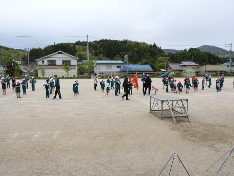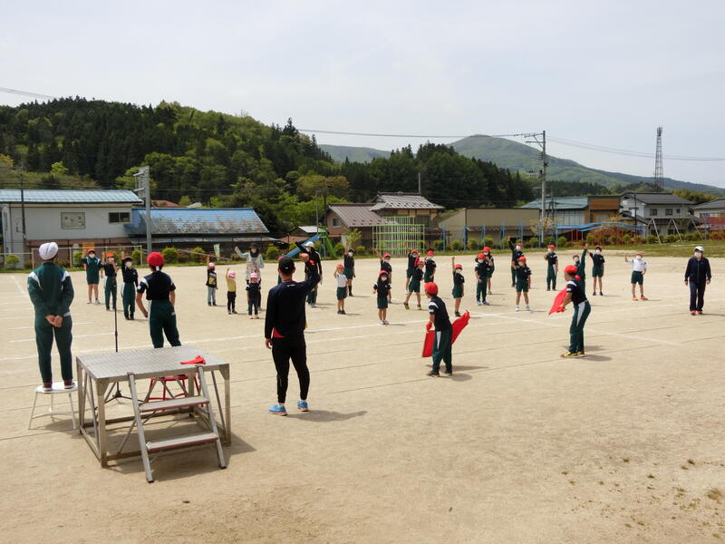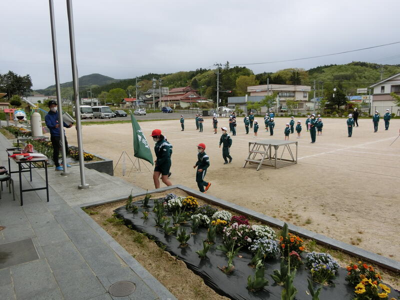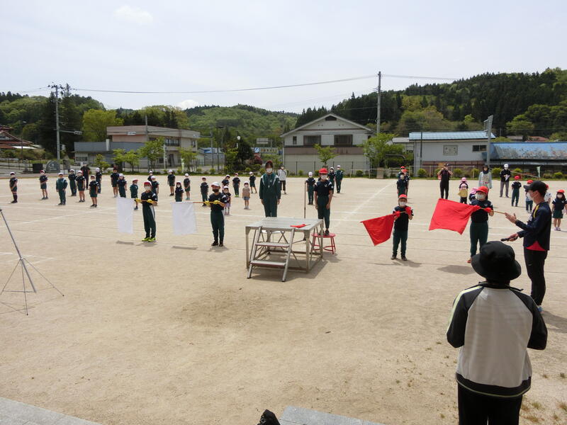 開閉会式、入場行進を中心に運動会の全体練習を行いました。今年度初めての全体練習でしたが、子どもたちはスムーズにキビキビと動くことができていました。この機会に、基本的な集団行動の仕方やラジオ体操、礼法等をしっかりと身に付けさせていきたいと思います。