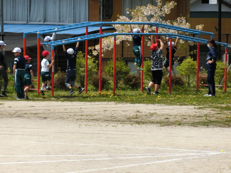今日の委員会タイム(業間)は、走の運動、鉄棒、登り棒・雲梯に分かれて、体力づくりをしました。