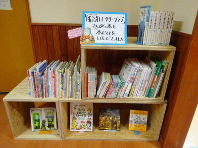 いただいた図書は,図書支援スタッフの方が階段を上がったところにちょうどいいスペースがあったので,さっそくディスプレイしていただきました。ぜひ手に取ってみてください。