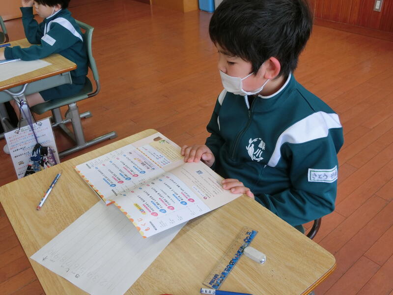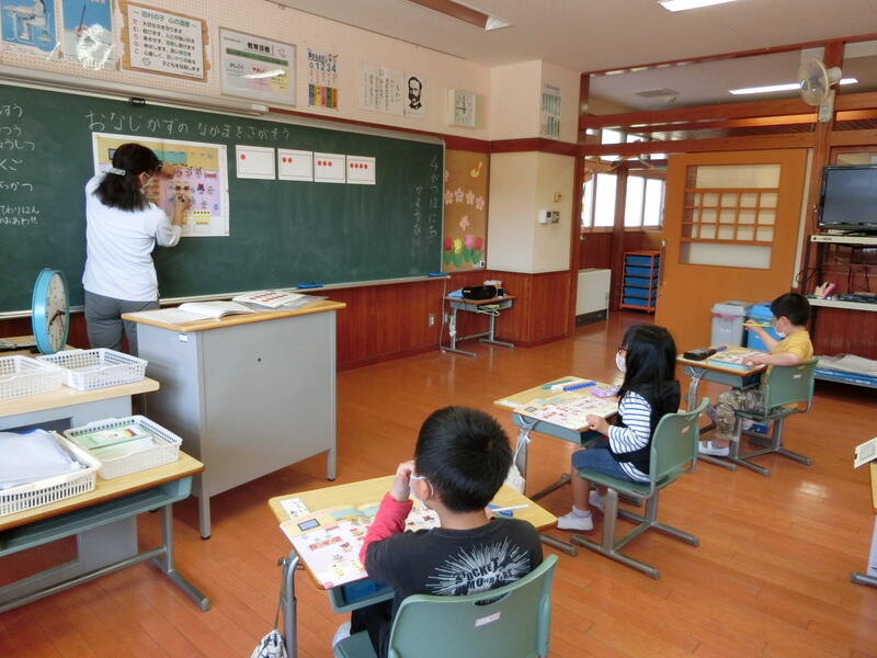 1年生の算数の授業です。これまで、遊びを通して様々なことを学んできた園での生活から、少しずつ教科の内容を体系的に学ぶ学習へと移行していきます。今日は、数についての学習をしました。同じ数のなかま、見つけられるかな?