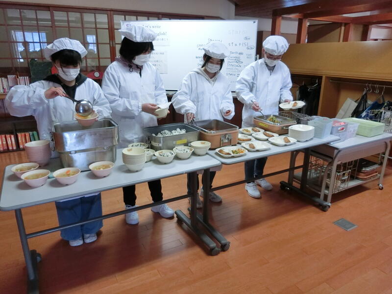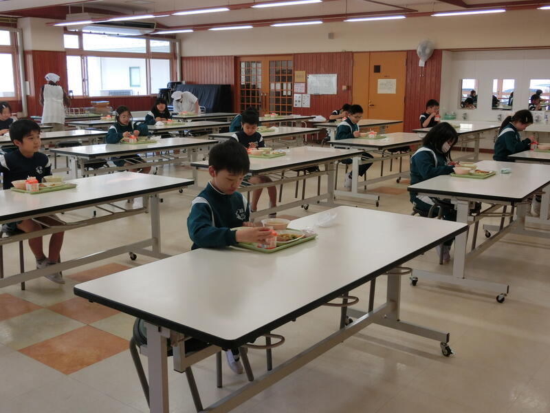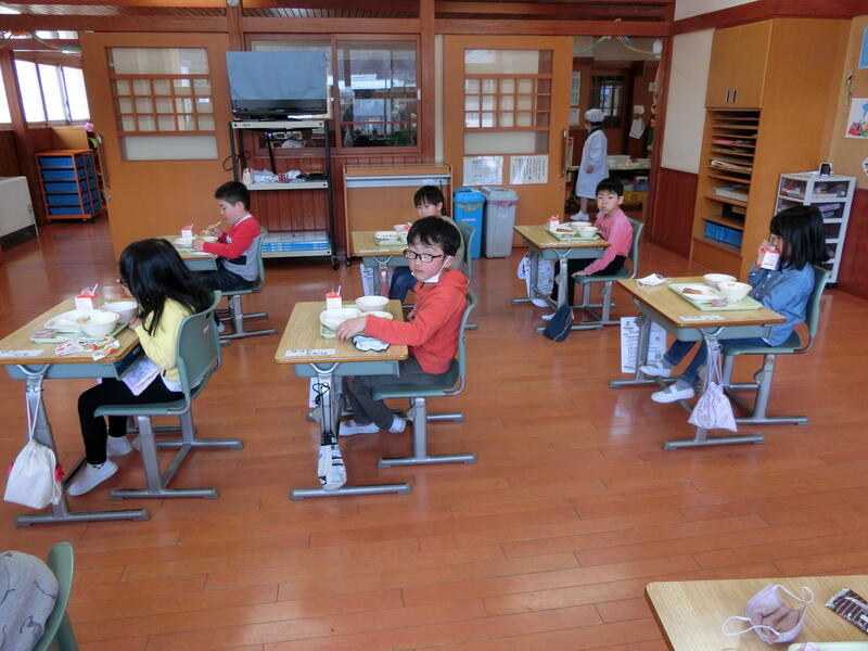 今日から給食がスタートしました。子どもたちは、運搬や配膳など協力して給食の準備をしています。これも大事な学びです。1年生も落ち着いて給食をいただくことができました。