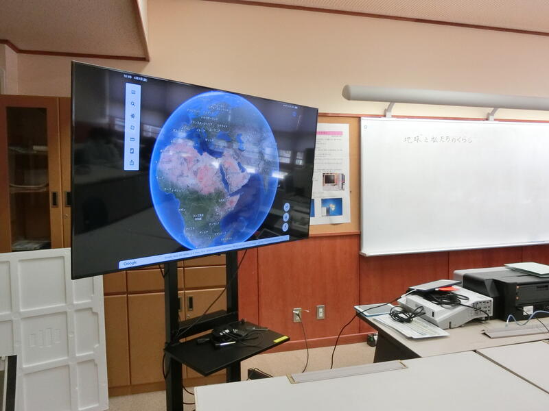 タブレットを活用しながら、普段とは違う視点で地球をとらえながら課題につなげていきます。
