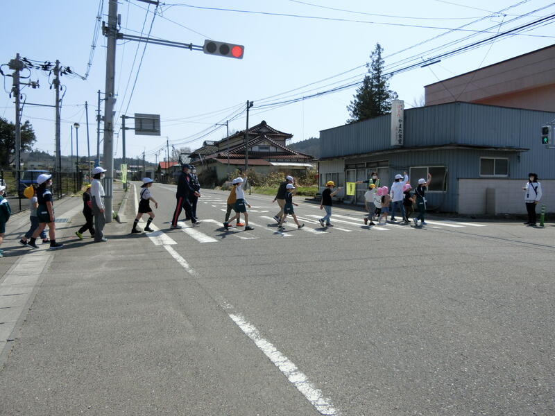 学校周辺の道路を使って、横断歩道の渡り方や歩道の歩き方について実技を通して学びました。また、講師の先生から道路を歩く際の注意点についてお話をいただきました。これから花見、連休等で交通量が増えることが予想されます。交通事故にあわないように安全な歩行に心がけ、「自分の命は自分で守る」ことができるよう、繰り返し指導していきます。ご協力いただきました交通安全母の会の皆様、駐在所長様、お忙しい中ありがとうございました。