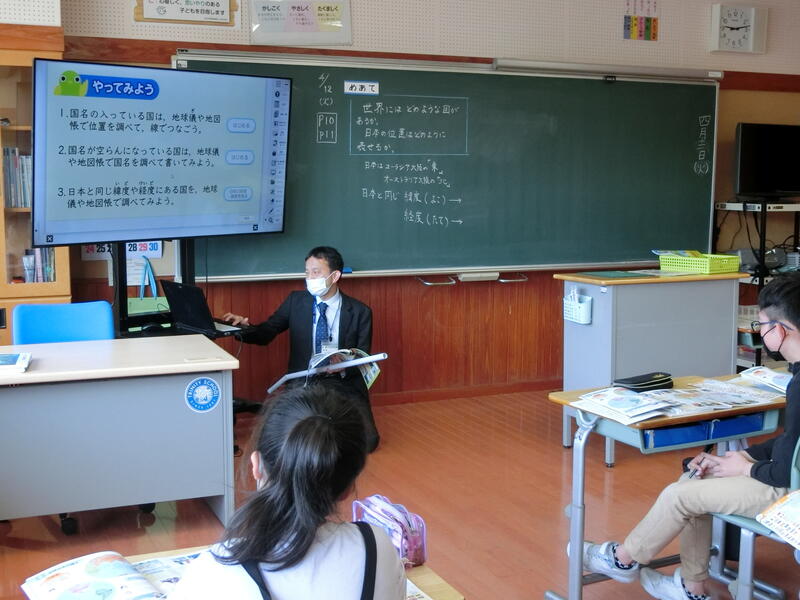 5年生は、社会の学習です。世界の国や、日本の位置について学んでいきます。