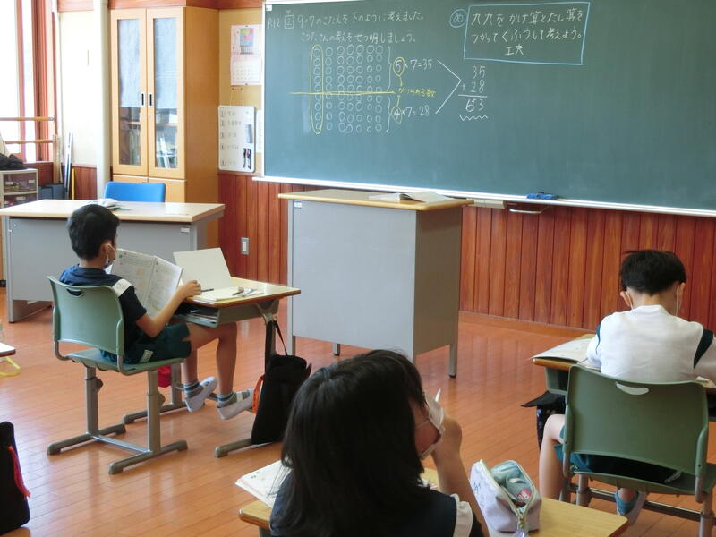 3年生は九九を基にした学習です。どのように計算したか説明できるかな?