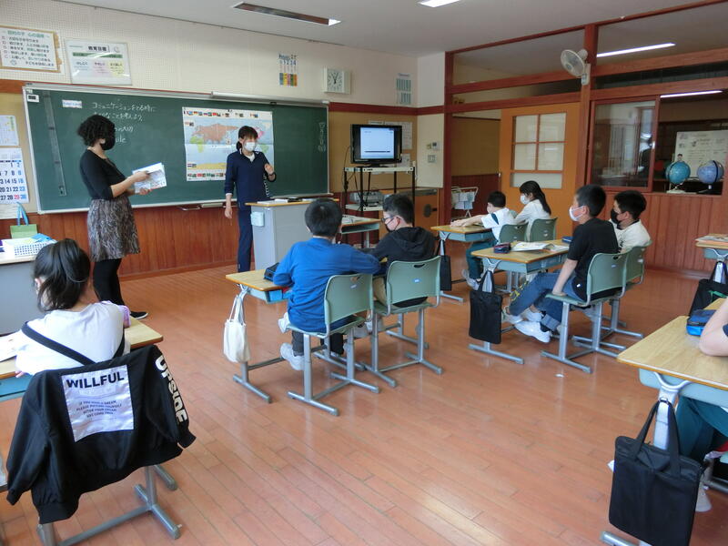 2022年4月12日 12時42分今年度から新しいALTの先生方と学ぶことになりました。今日は、その初めての授業です。5・6年生は、それぞれの先生方と意欲的に英語の学習に取り組んでいました。本校では、時間になると子どもたちがALTの先生を迎えに来ます。教室に向かう途中で、先生に自分から話しかける子どもの姿を見て、とても嬉しい気持ちになりました。