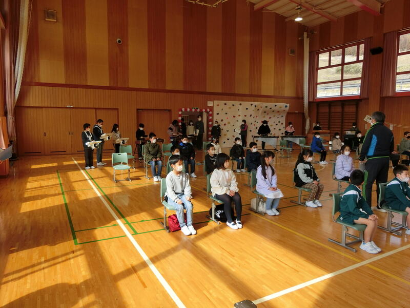 今日の3校時は、6年生を送る会でした。5年生が中心となって会を企画・運営してくれました。在校生の感謝の気持ちを6年生に伝えたり、6年生と楽しくゲームをしたり・・・
