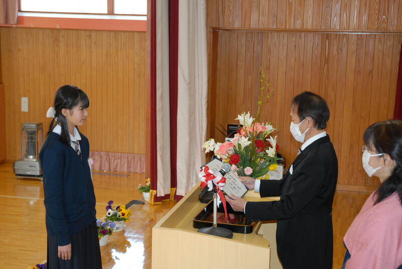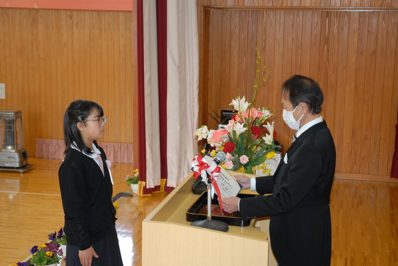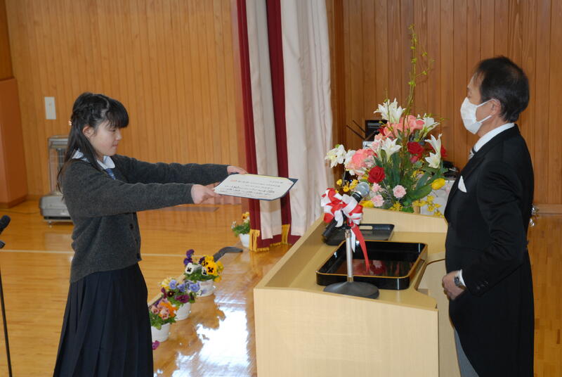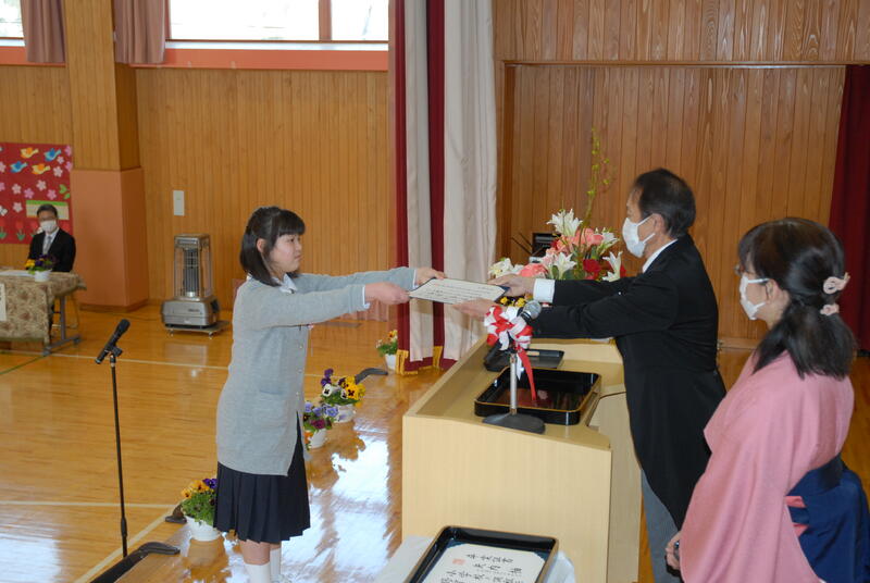 令和3年度 修・卒業証書授与式を行いました。修了証書授与式では、在校生にそれぞれの学年の課程を修了した証として、修了証書が授与されました。進級した学年でも、自分の目標をもって、あきらめず頑張ること、友達と互いに認め合い、支え合い、学び合う(切磋琢磨する)ことを期待しています。