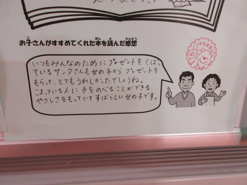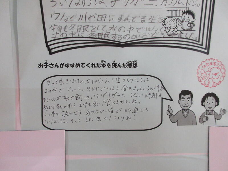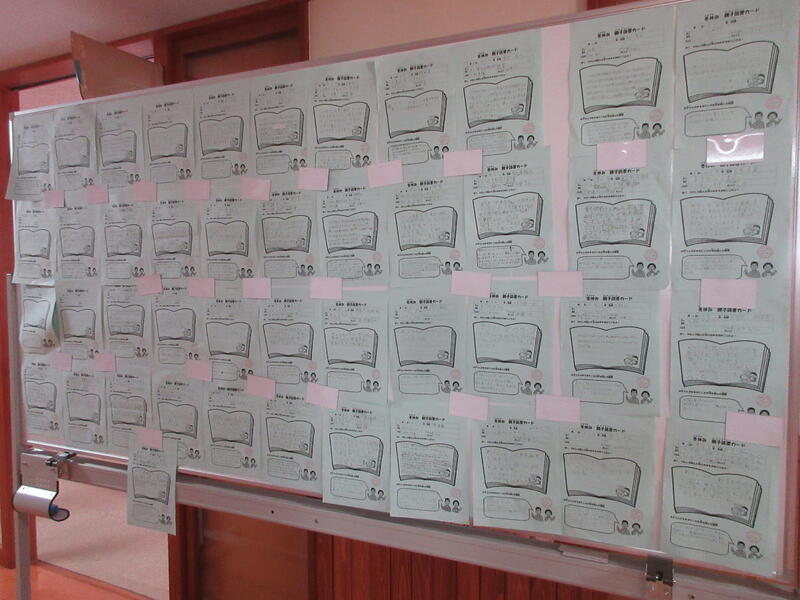 読書交流 長期休業を利用し、親子で同じ本を読み、読書カードを使って感想を交流しています。