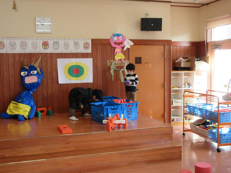 体育館には、ボルダリングの設備があり、子どもたちは元気に遊んでいます。