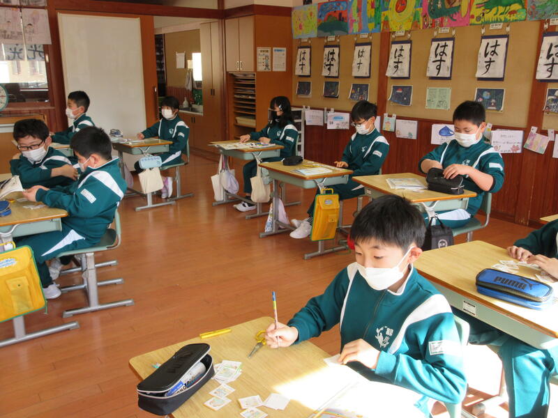今日のきずなタイムでは、来年度の新入生の確認と新通学班の編成を行いました。新年度も安全な登下校ができるよう、班ごとに話し合いました。緑小では、徒歩で登校する班は、班長さんを中心に1列で安全に登校しています。上級生が下級生の歩くペースに合わせるなど、思いやりの気持ちも育っています。バス通の子どもたちは、感染防止対策として、決められた座席に座り、マスクを着用し、さわいだりふざけたりせずにバスに乗っています。