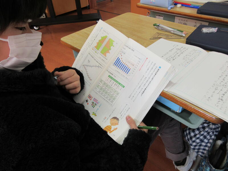 <前時までの確認をした後、自分が決めた資料について、「読み取れること」と「効果」を考えます。>