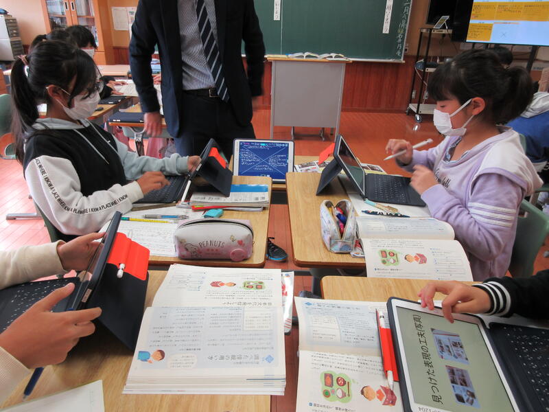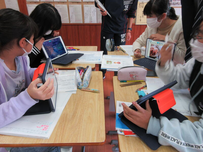 今日は、5・6年生の校内授業研究会がありました。「資料の効果や表現の工夫について、自分の考えを広げる」ことをねらいに行いました。子どもたちは、タブレットを活用しながら、自分の考えをまとめたり、友達と考えを交流させたりしながら、主体的に学習を深めることができました。